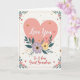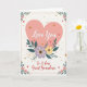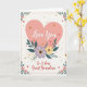 Designed with a cream-toned background, the card centers on a large rosy-pink heart that sets a gentle, affectionate mood ❤️. Across the heart, the words “Love You” appear in flowing white lettering, placed prominently near the top half. Below, leafy stems in teal and olive shades curl upward as if leaning in close, framing two blossoms like a shared bouquet between loved ones. One flower has soft lavender petals with a golden-brown center, while the other shows sunny yellow petals around a similar warm center 🌼. Tiny ruby-red hearts and scattered gold flecks are sprinkled around the open space, adding a light, celebratory sparkle without crowding the design. Near the lower portion, “To A dear Great Grandma” is written in rich red lettering, centered and easy to spot. A thin salmon-pink border outlines the edges, with small floral sprigs decorating the corners.