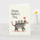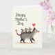 This card shows a sweet scene of a gentle, marsupial-like parent with soft gray-white fur and rosy cheeks carrying three smaller lookalikes on its back, their faces turned forward as if enjoying the ride ❤️. The little ones have tiny red-tipped noses and ears that add bright touches against their muted bodies, and their close spacing suggests a cozy, trusting bond. The group moves across a lightly shaded rosy strip near the bottom, giving the image a calm sense of forward motion. Above the characters, the phrase “Happy Mother’s Day” sits near the top in flowing dark lettering, centered so it feels like it’s watching over them. A single red heart floats just above the parent’s head, echoing the red accents and adding a romantic warmth to the family closeness 🌼. The background stays a light cream tone, leaving plenty of open space that makes the soft shading and rounded shapes stand out. Gentle highlights on the fur and cheeks keep the mood tender without adding extra clutter. The final detail is the small red heart hovering above the parent’s head against the cream background.