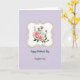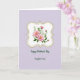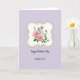 Designed with a soft pastel lavender background, the card sets a gentle, affectionate tone like a quiet hug ❤️. Near the upper center sits a curving decorative frame outlined in warm gold, with a neat dashed detail tracing the inside edge. Inside the frame, a full bouquet fills the space, showing layered rosy-pink flowers with small yellow centers, one bright white bloom, and a few small pink buds that feel like little notes of care. Green leaves and slim stems weave together, giving the arrangement a natural, close-knit look, as if it was gathered with someone special in mind. Below the illustration, the phrase “Happy Mother’s Day” appears in a deep green, flowing lettering style, centered and easy to spot. Under that, “Daughter in-Law” is placed as a second line in the same deep green, slightly smaller, keeping the message tender and direct 🌼. The gold frame arches smoothly around the bouquet, with the dashed inner line following every curve against the lavender field.
