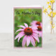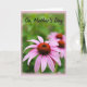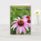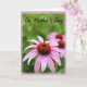 On the front of the card, a close-up flower fills the foreground, its long, gently curving petals fading from soft mauve to rosy pink like a tender blush ❤️. At the center sits a russet-toned disk made of many tiny, spiky florets, adding rich texture that draws the eye in close. Behind it, green leaves melt into a smooth blur, creating a calm, intimate setting that feels like a quiet moment shared between loved ones. A second flower appears farther back, softly out of focus, echoing the main bloom the way a supportive friend mirrors your mood 🌼. Near the top, the words “On Mother’s Day” are placed in flowing lettering, set in a dark tone that stands out against the lighter background. The light is gentle and diffused, giving the petals a soft glow and a cozy, affectionate feel without looking staged. A pale pink vignette frames the edges, subtly surrounding the flowers like a warm halo.