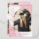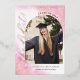She did it! Tell your friends and relatives of your daughter's achievement and invite them to the party celebrating her graduation, all with one double-sided photo card. Your daughter's photo will be printed against a dreamy background of blush pink and rosy pink. She did it! is written along the side in rose gold foil with little rose gold foil flecks decorating the background. The graduation party invitation is printed on the back along with four more photos, so you can add recent photos or childhood photos or a little of both to show your daughter's journey through childhood and adolescence.