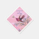 A rosy hummingbird flutters through the flower bed in pursuit of a little green butterfly. The soft, delicate background creates a hazy suggestion of flowers and sky. The colors of the hummingbird, magenta, rose and pink, were altered and brighten to create this feminine style statement for decor, accessories and correspondence.