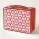 This is a standard metal lunchbox that appears to work just fine. We designed this box ourselves with an uploaded photo and custom text on the front and back. It looks absolutely beautiful except the front of the lunchbox is not centered like it shows in the photo. The print borders don't align with the inset flat part of the box where the preview photo online showed it perfectly centered in there. The back looks nice and centered though.