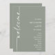 Rotated Calligraphy Sage Green Wedding Program. Available digitally or printed. A modern typographical design with Welcome in a set script and rotated.