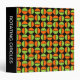 An attractive geometric design made up of divided circles with two toned halves each motif is rotated 90 degrees to the previous one creating an interesting and dynamic modern pattern.