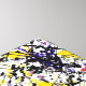 Abstract Expression containing the colors medium blue, yellow, black, white, orange, dark violet, pale goldenrod, orange red, khaki.