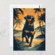 Colorful graphic art design of a rottweiler at a tropical beach with palms. Awesome gift for Rottweiler owner and Rottweiler lover.