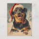 Wishing you a festive season filled with joy and warmth! This Christmas card features a lovable Rottweiler, donning a Santa hat with a twinkle in its eye. The playful canine spirit brings a touch of holiday cheer, promising a season of merriment and tail-wagging happiness. Share in the joy as this festive friend spreads Christmas magic, making your celebrations extra special.