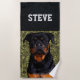A cool Rottweiler dog animal custom name beach towel.