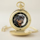 A portrait of a gorgeous Rottweiler Dog is the feature at the center of this elegant pocket watch. The dog image is framed by matching gold numbers on a black circle band with an inner thin gold band. Perfect for anyone who loves a Rottie, and this makes a wonderful dog show award, too.