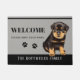 Cute doormat featuring an illustration of a Rottweiler puppy. Customizable background color and texts. Perfect gift for the dog lover or Rottweiler owner.