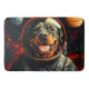 Rottweiler Explores Bath Mat