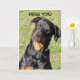 This precious "Get Well Soon" greeting card features our lovable and adorable Rottweiler named Heidi. The front of the card shows Heidi with her head cocked in a comical way and her soft brown eyes looking into your own. The front of this card reads, "Miss you" and the inside reads "Get well soon please." With Heidi's sweet face, this card is sure to make anyone start feeling better.