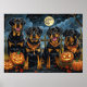 Unleash the spooky spirit with this eerie Halloween design featuring a pack of dogs under a dark, moonlit sky, surrounded by flying bats and glowing pumpkins. Perfect for those who love a touch of frightful fun with their furry friends!