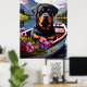 Fun bright artwork that really captures the mood I’m going for! Pop art with cyberpunk energy. A little sweet but also spicy. This art is the perfect size and vibe for our art gallery wall. The printing looks great, high quality with vibrant colors! I went with the semi-gloss finish, which adds a little extra shine and thickness to the print making it excellent for high-traffic areas like the staircase wall.