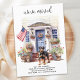 Announce your move to family and friends with our patriotic moving announcement featuring a beautiful watercolor painting of a Rottweiler dog, modern house with a blue door and the American flag proudly displayed on the front porch. This announcement is perfect for dog lovers and anyone looking to announce their new address. With its red, white, and blue color scheme, this announcement is a great way to show your love for the USA while sharing your exciting news. Let everyone know that "We've moved!" and invite them to come visit and meet your best friend in your new home. COPYRIGHT © 2023 Judy Burrows, Black Dog Art - All Rights Reserved. Rottweiler Patriotic Personalized Pet Dog Moving Announcement