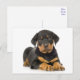 This fun canine postcard features an image of a beautiful brown and black Rottweiler puppy highlighted against a crisp white background. This sweet pup is ready to help you let friends, family, and customers know your thinking of them.