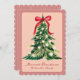 Rouge Coquette Ornate Rococo Bow Christmas tree Holiday Card