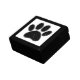 A black dog paw print cartoon style. Design with distressed effect applied to image. Product and gift idea for people that love dogs.