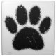 A black dog paw print cartoon style. Design with distressed effect applied to image. Product and gift idea for people that love dogs.