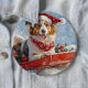 Rough Collie Dog in Sledge Let it Snow Christmas Button