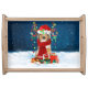 Rough Collie Dog in Snow with Christmas Gifts Serving Tray