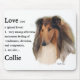 Love [luv] n (plural loves) 1. very strong affection: an intense feeling of tenderness, devotion, and compassion. 2. see also... Collie. Browse our rough collie section for collie gifts to treasure always. Hoodies, sweatshirts, and other apparel items. Mugs, magnets, tote bags, make terrific rough collie owners gifts for any occasion.
