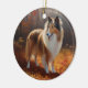 Rough Collie in Autumn Leaves Fall Inspire Ceramic Ornament
