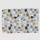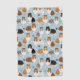 Cute Rough Collie dogs sit and stand and rollover with sable, tri-color, merle and white coats with scattered dog bones and pawprints pattern.