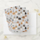 Cute Rough Collie dogs sit and stand and rollover with sable, tri-color, merle and white coats with scattered dog bones and pawprints pattern.