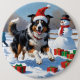 Rough Collie Running in Snow with Christmas Hat Button