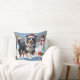 Rough Collie Running in Snow with Christmas Hat Throw Pillow