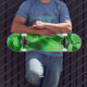Rough metallic green dunes drawing skateboard