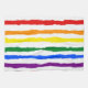 Roughly drawn stripes colored by the rainbow. Red, orange, yellow, green, blue and purple. The solid background is white by default, but you can add any color of your choice; white and black gives clear colors, but perhaps you feel like going all the way by adding pink?
