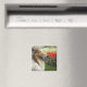 Pretty Rough Sable collie n RED tulips on a fridge magnet
