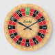 You'll feel lucky with this fabulous roulette wheel inspired clock hanging on your games room wall . Features easy to read hour markers, faux wood background, and customizable type. Makes a great gift idea.