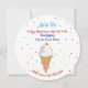 Round Birthday Party Ice Cream Cone Invitation with a Cherry on Top. Customize Name, Date & Time, Place and RSVP contact info. Gender neutral party theme.