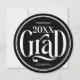 This black and white graduation invitation has a unique, eye-catching design giving it a fun, retro flair. The circular format stands out from traditional rectangular cards and adds a modern, playful twist. Bold typography and clean white text against a black background create a striking contrast, making the details easy to read. A personalized photo framed in a race track oval shape adds a warm and personal touch to the overall sleek design. The layout balances a classic with trendy, perfect for celebrating a stylish graduate.