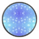 Round blue Bluetooth speaker with a front design featuring soft glowing white circles over a gradient background from light to dark blue, creating a calming effect.