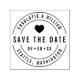 Round Modern Bold Save the Date Self Inking Rubber Stamp featuring the words "Save the Date" in the center with date in bold below it, a heart graphic and a double round border for the couple's names and location between it in bold.
