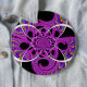 An abstract design primarily in purple, black, and white covers the front of this beautiful