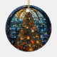 Ceramic Christmas Tree Ornament. Printed to appear like Stained glass, this is a ceramic ornament, no light comes through the ornament.