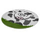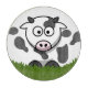Cartoon round spotted cow on novelty round glass cutting board.