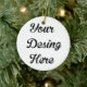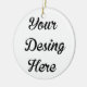 Lightweight, smooth, pure white ornament with nice sheen. Perfect size to be seen from across the room ... and to attract closer inspection! Price was great for ordering enough for the whole family! Clear, bold black design just as requested. Matches the order exactly. Just so nice!