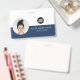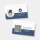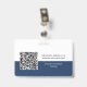 Easily personalize this Custom Horizontal Business Minimalist Employee Name Badge with Photo, Scan Qr Code or Scan Bar Code and business logo. A simple business design with round photo, in navy blue and white colors fully customizable in front and back sizes, sans-serif basic and modern fonts and a professional and clear look. Avaiable with lanyard, metal clip or with retractable. No minimum order.