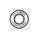 An Ex Libris rubber stamp design with a simple bold round design and a decorative inner circle.