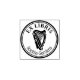 A round Ex Libris rubber stamp design with a bold edged and dotted frame with a harp motif.