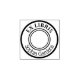 An Ex Libris rubber stamp design with a simple bold round design and curved lettering.