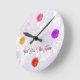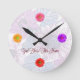 Round floral wall clock with "God Bless This Home" text on a background of flowers and colorful daisies.