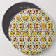 Round floral mousepad featuring a vibrant pattern of sunflowers and purple flowers against a light background. The design evokes a cheerful, lively tone.